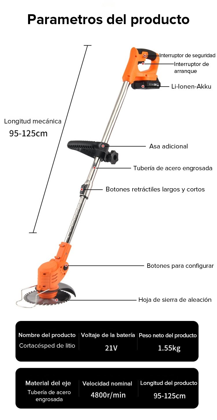 Motor de cobre puro 1880W, Tritura maleza instantáneamente! Cinco veces más eficiente, limpia 1000㎡ de maleza en una mañana!