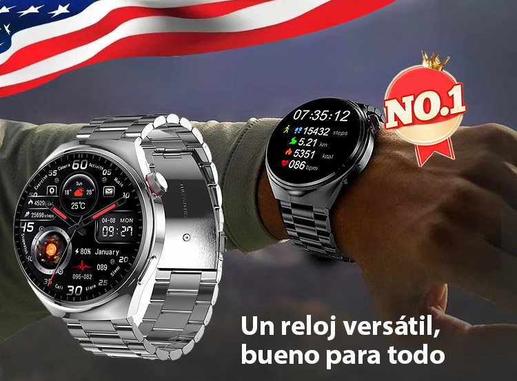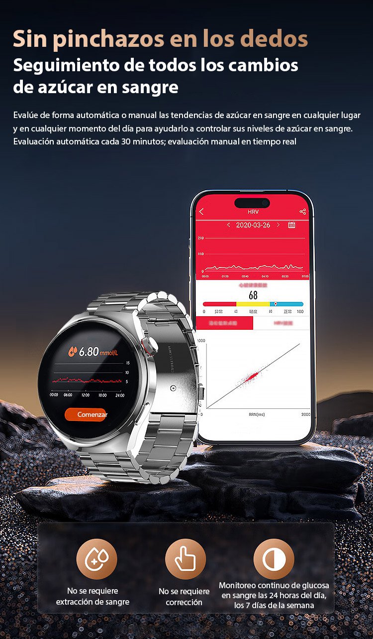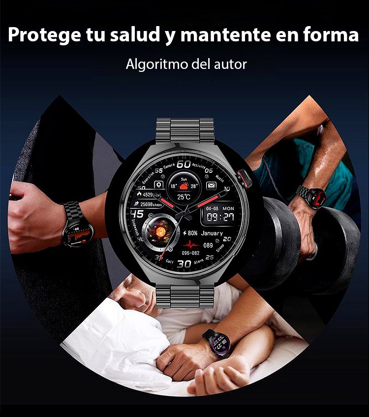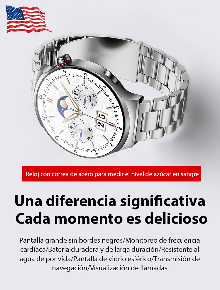 Reloj Watch4 Pro con correa de acero y medidor de glucosa